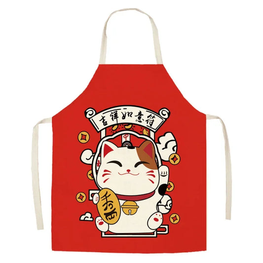 ÉpuiséTablier de cuisine chat porte bonheur Japonais rouge