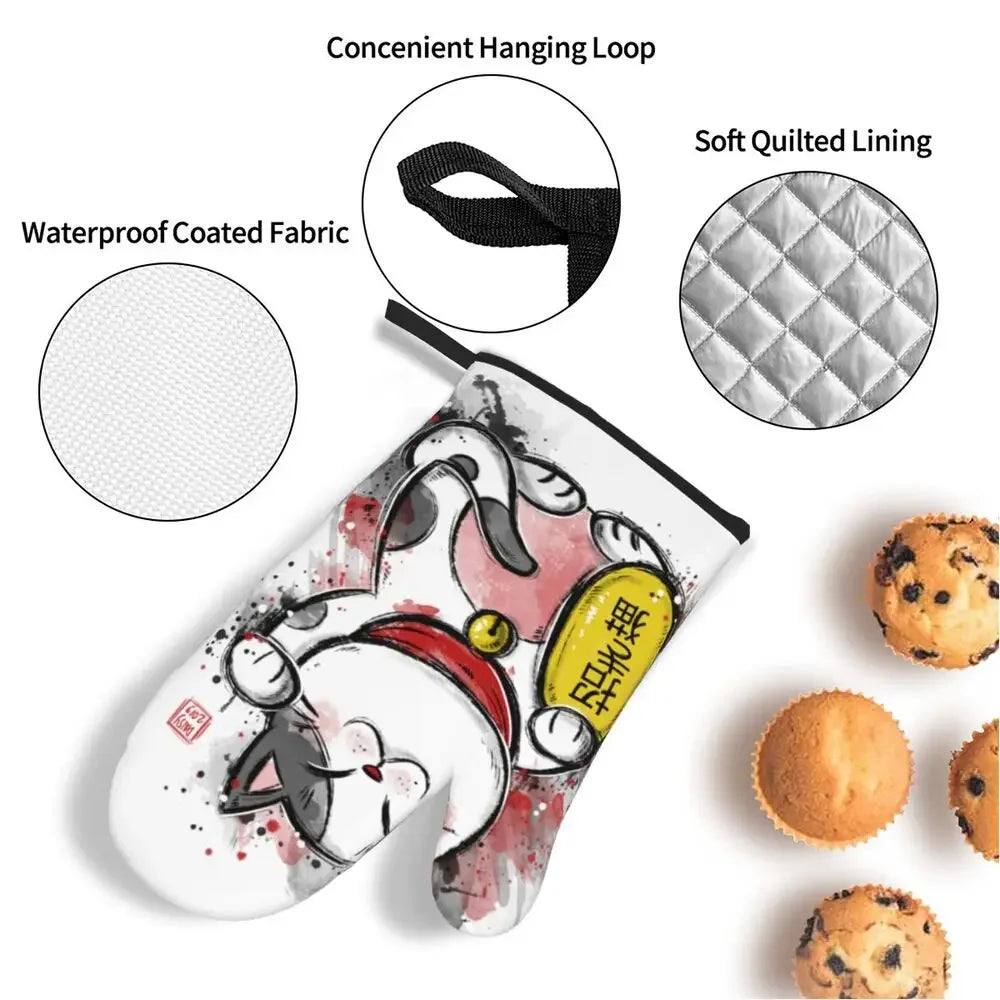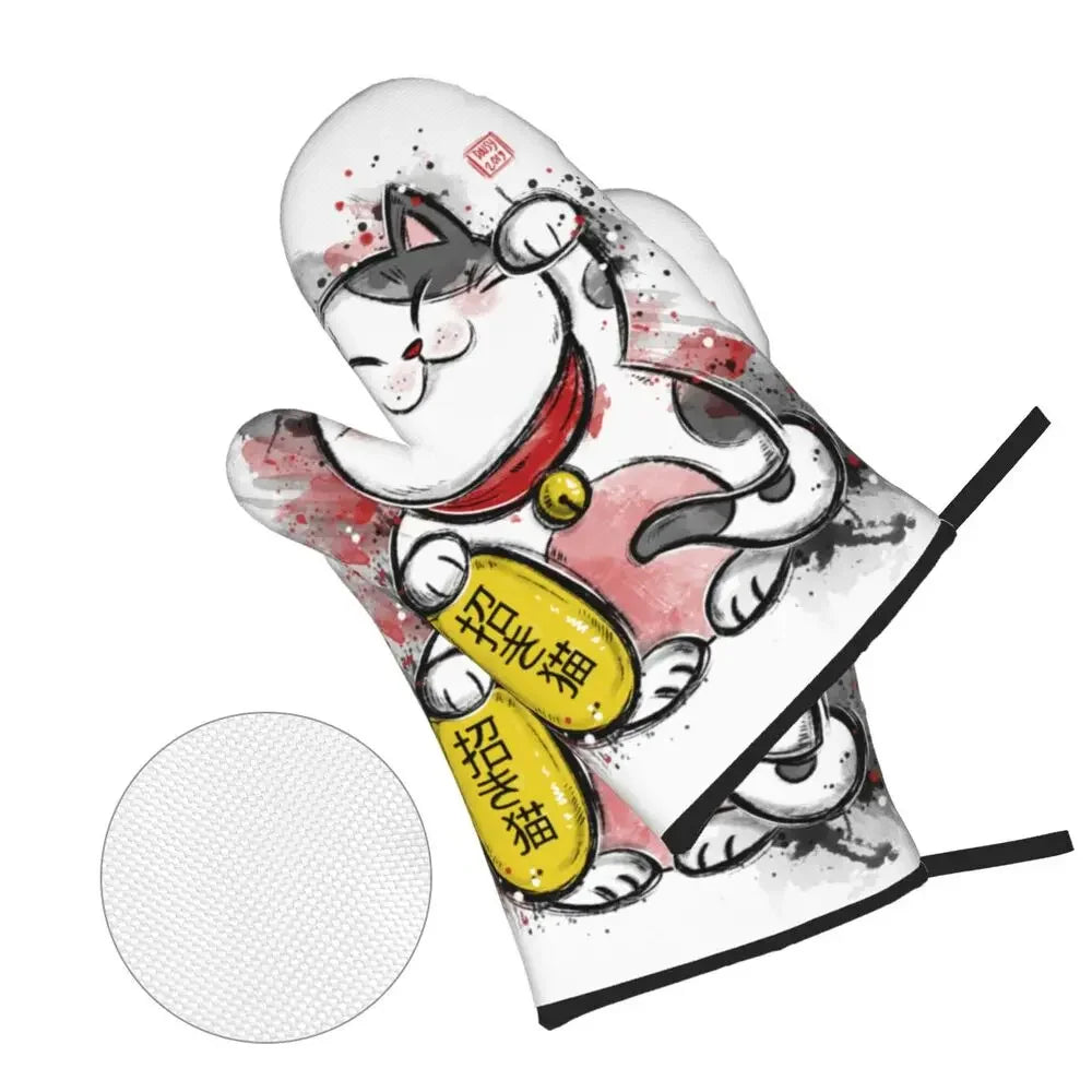 Manique de cuisine Maneki Neko blanc "Abondance" – Protection et prospérité dans votre cuisine
