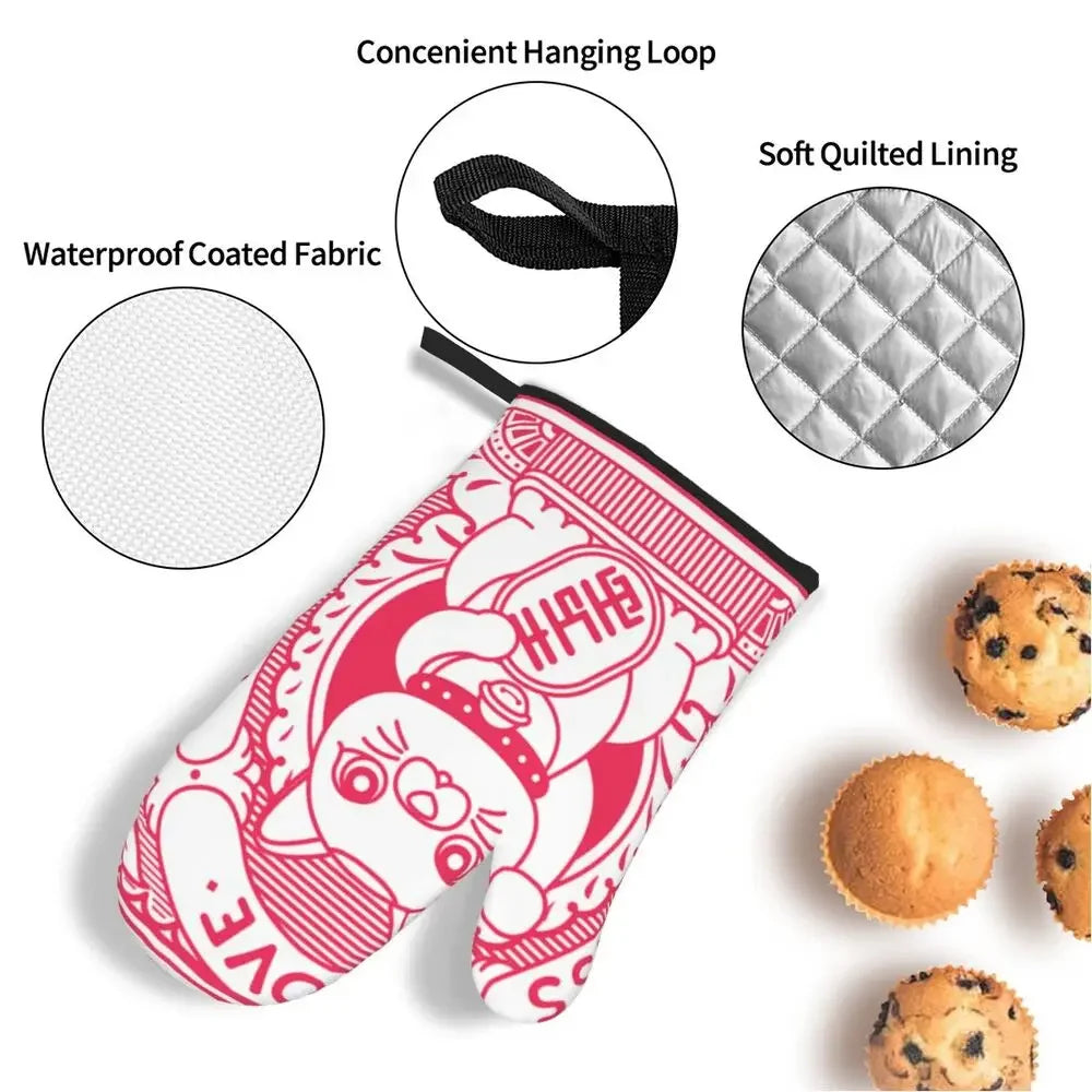 Manique de cuisine Maneki Neko rouge "Bonheur" – Chance et protection dans votre cuisine